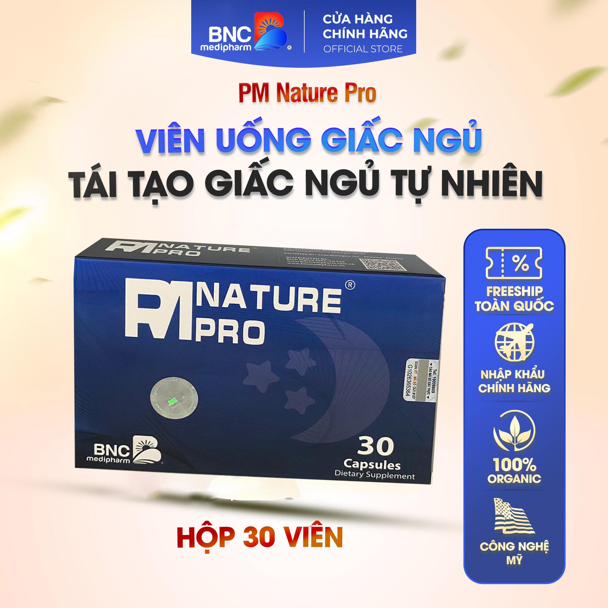 PM Nature Pro is listed by BNC Medipharm at 900,000 VND per 90-capsule bottle and 400,000 VND per 30-capsule box.