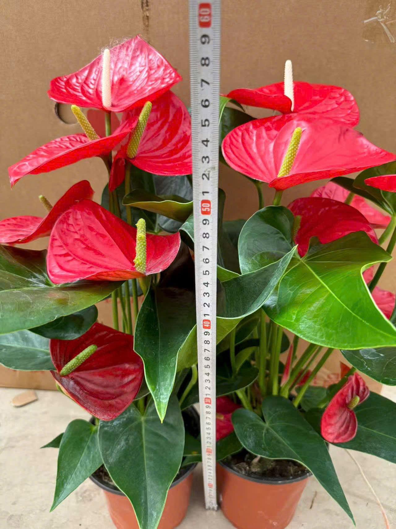 - Fresh, red, heart-shaped petals with an elegant yellow spadix.